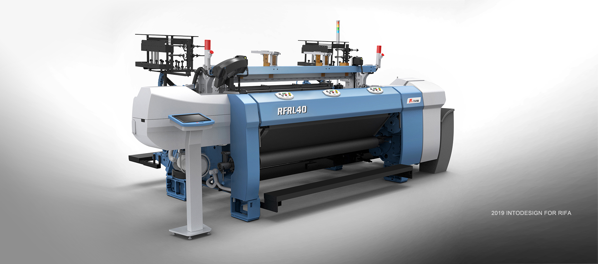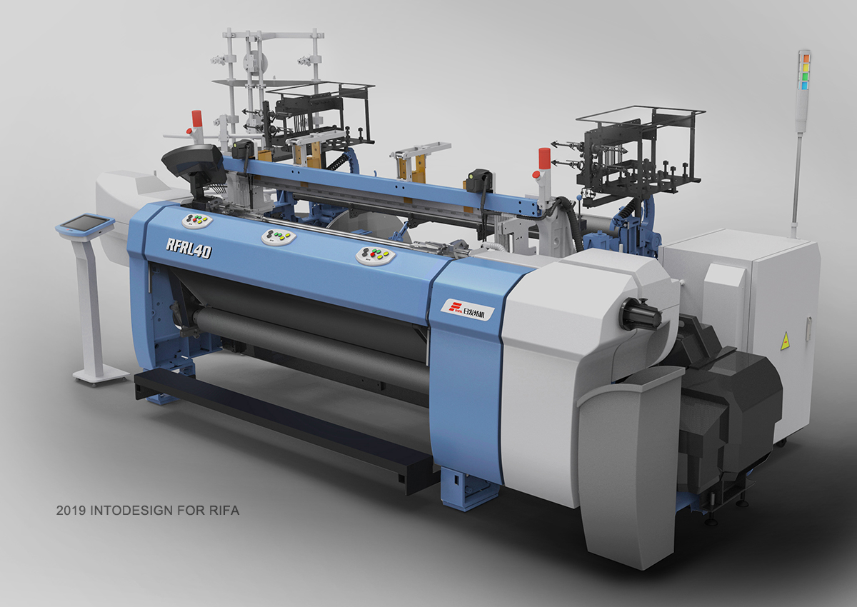 所以在設備外觀設計過程中設計師大膽采用了玻璃鋼的成型工藝,以此滿足模具成本低、抗震能力強,成品良品率高等要求;并充分考慮“人性化”的因素,通過對劍桿織機形狀、配色進行合理設計,解決劍桿織機“人、機、環(huán)境”三者之間的平衡,滿足了使用者安全性、舒適性、便利性的需求??梢哉f人性化設計理念是本項目外觀造型最重要的因素,同時這也是所有機械設備外觀造型的決定性因素之一。
